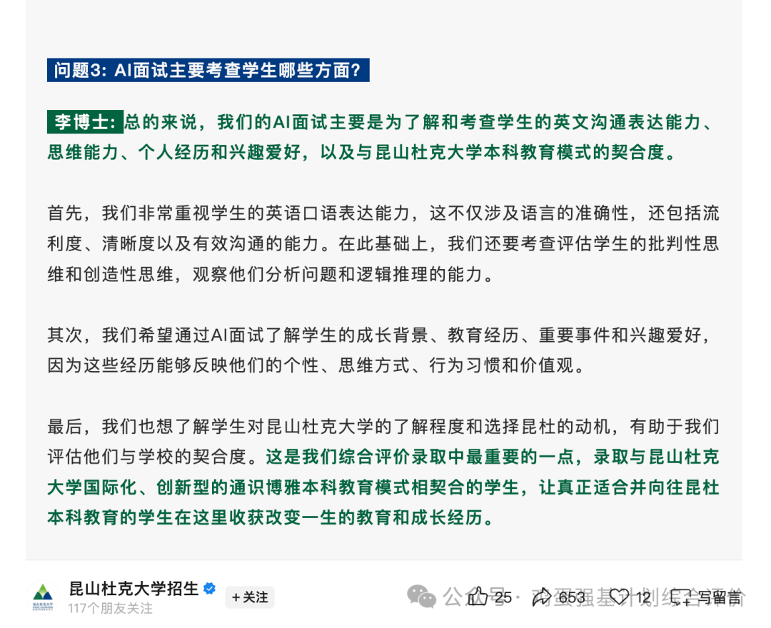 昆山杜克大学本科申请条件,AI面试要点,暑期如何准备?