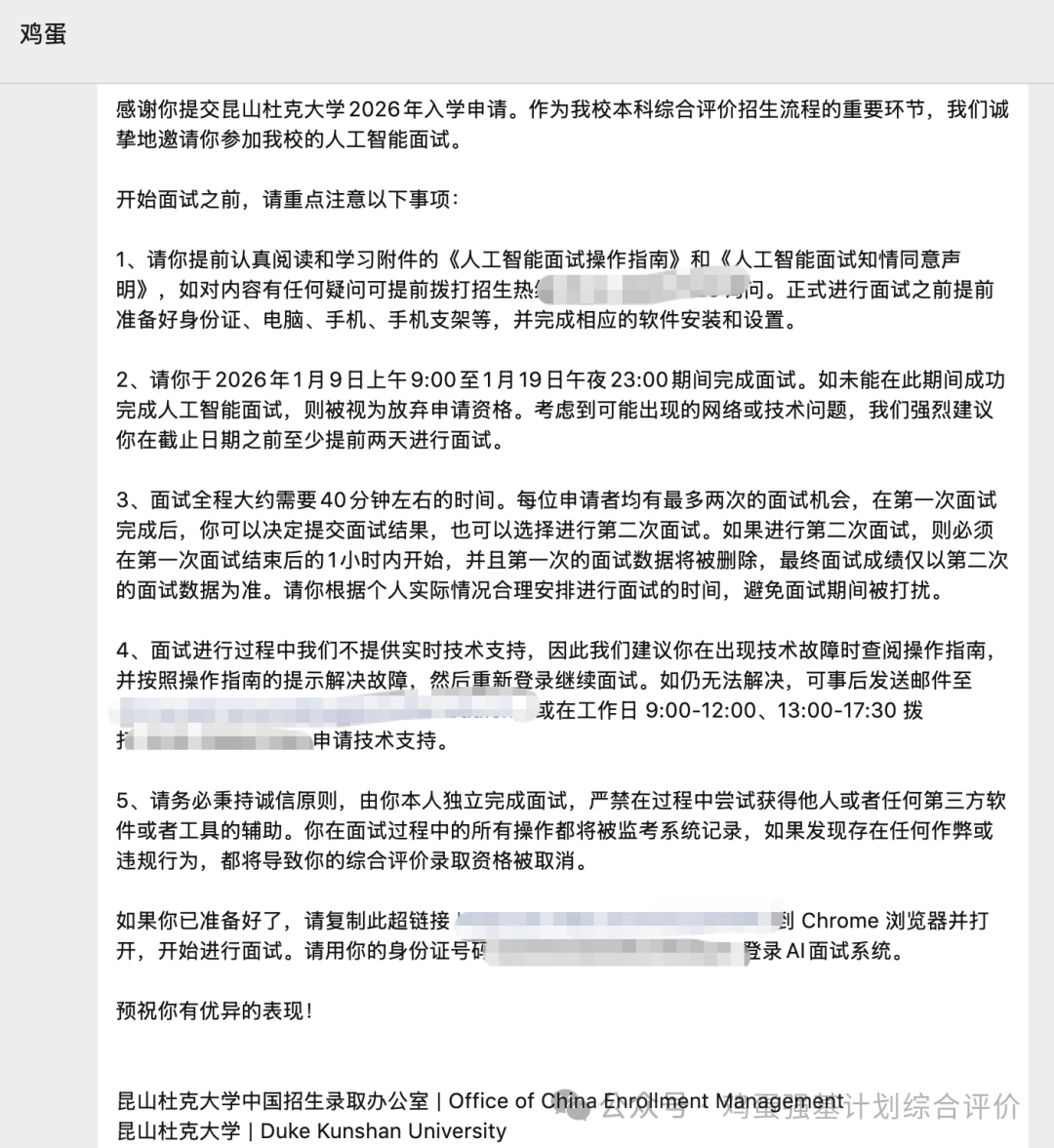 昆山杜克大学2025AI人工智能面试考核邀请通知及注意事项