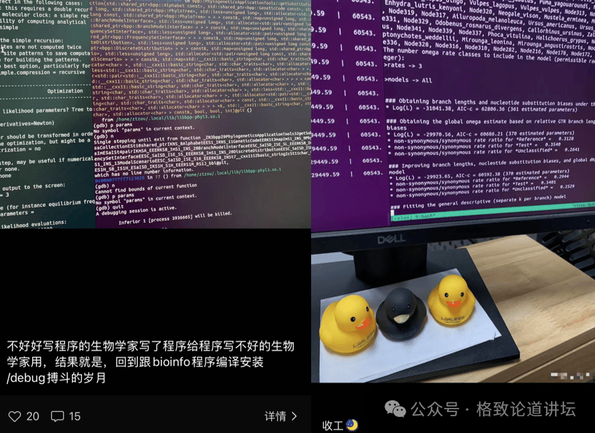 我们平时的工作,可能跟很多人想象当中的,或者传统印象里的演化生物学家去研究古生物或者做实验是不同的。我们更像是一些程序员,每天主要的工作就是在电脑上编写程序,对大量的基因组数据进行分析,试图从中去解释我们感兴趣的一些演化现象,读出演化的历史。