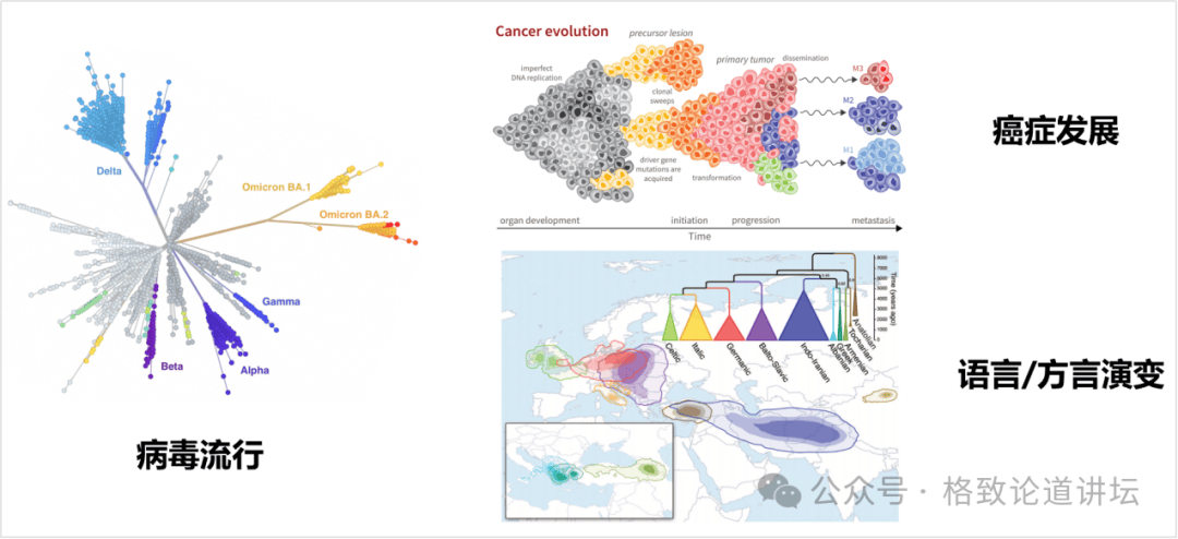 比如说,病毒在人群当中的每一次流行,事实上都是不同病毒株系优胜劣汰的演化过程。癌症的发展,其实也是癌细胞在我们人体内发生优胜劣汰的一个演化过程。甚至于说,我们世界各地不同语言、不同方言的演变也可以用一个演化的模型来描述。所以学习演化,可以帮助我们更好地去理解世界。