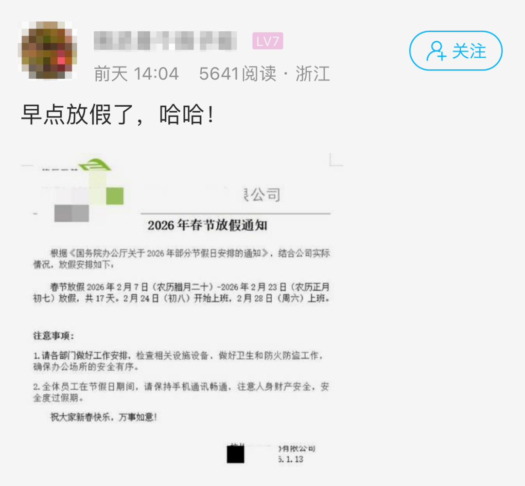 近日,不少网友在萧内网App发帖说,已经收到公司放假通知,提前放假,近20天假期——