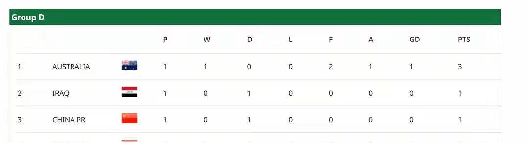 另一场比赛中,澳大利亚以2-1完成逆转,击败泰国队,目前积3分排名小组第一,伊拉克和中国同积1分紧随其后,泰国队暂列垫底。从首轮赛况看,本组四队实力较为接近,泰国虽负但率先进球,且多人被罚下20余分钟,人数劣势极大影响表现。而中国队平局成绩尚可,只要未来比赛发挥稳定,仍大有出线希望。