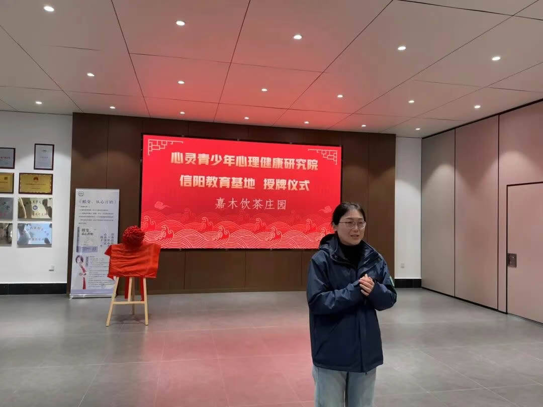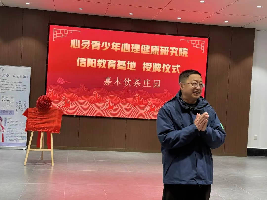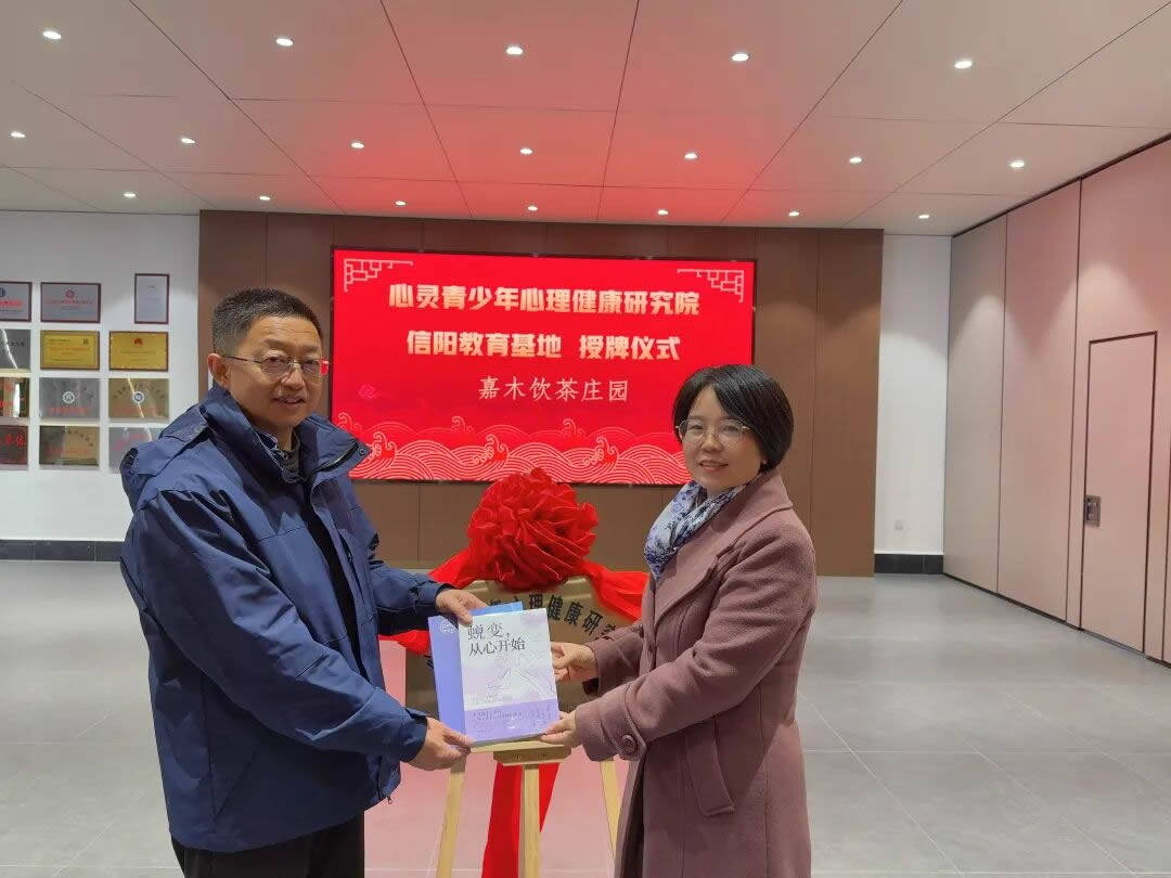 导读:茶香氤氲处,心灵栖居时。2025年12月6日,心灵青少年心理健康研究院信阳教育基地授牌仪式在嘉木饮茶庄园圆满举行,研究院院长潘新凌与嘉木饮创始人、第一代掌门人陈贵斌先生共同见证这一“自然与心灵共鸣”的特殊时刻。