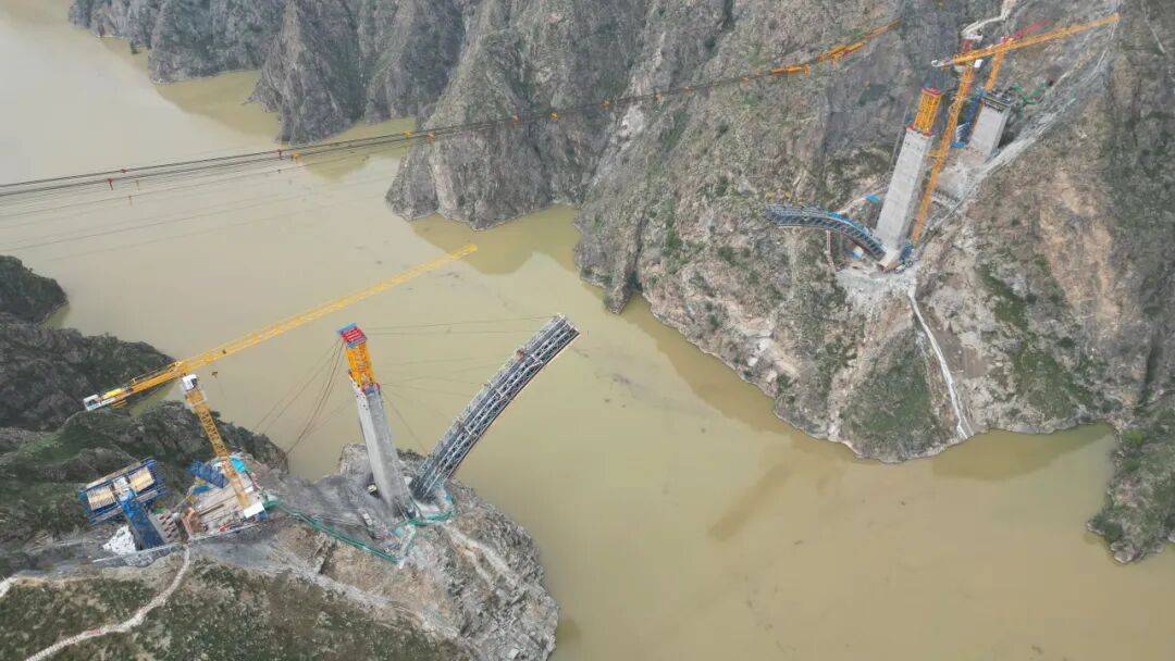 兰合铁路洮河大桥主拱顺利合龙,铁路人跨越洮河“V”形河谷,向着甘肃临夏、甘南两州铁路“留白区”挺进。