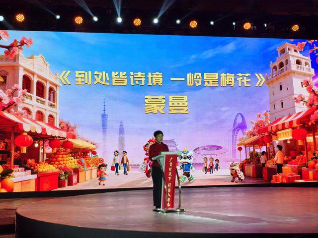 现场气氛热烈,年味浓厚。广东文旅数字文旅推荐官“粤小文”身着刀马旦戏服,携手“粤小旅”惊喜登场,在激昂的岭南鼓舞伴奏下穿梭舞台,与十五运吉祥物喜洋洋、乐融融欢乐互动,瞬间拉满新春氛围。著名文化学者蒙曼以《到处皆诗境,一岭皆梅花》为主题分享更是点睛之笔,用生动的诗意解读广货背后“敢为人先、兼容并蓄”的文化特质,为这场消费盛宴注入深厚文脉底蕴。