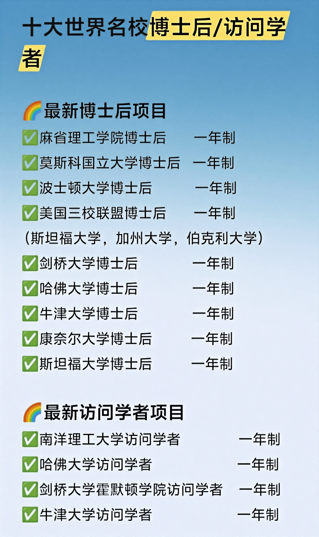 博士后/访学项目介绍
