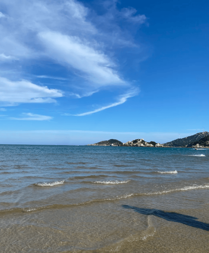 第二天我们驱车前往南澳岛。穿过壮观的南澳大桥,我们来到了这个美丽的岛屿。沿着环岛公路行驶,一边是苍翠的山林,一边是蔚蓝的大海,景色美不胜收。我们在青澳湾停留,这里的沙滩细腻,海水清澈,非常适合家庭游玩。孩子们在沙滩上堆沙堡、捡贝壳,玩得不亦乐乎。