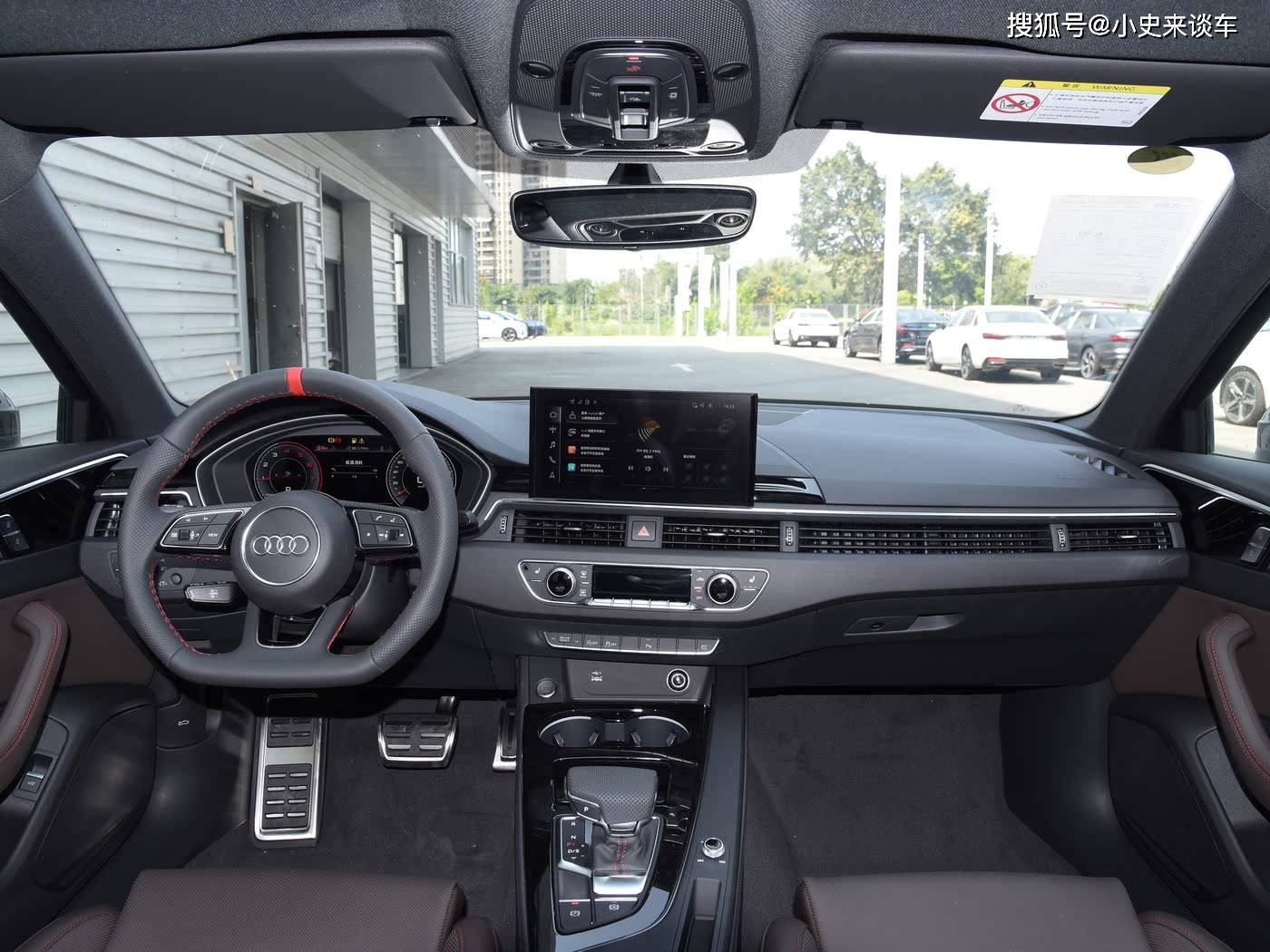 进入车内,内饰延续奥迪极简豪华风格,以驾驶者为中心打造环抱式座舱,手能触及的区域均采用软包材质覆盖,搭配金属饰条与法式双缝线工艺,质感出众。核心升级为12.3英寸虚拟仪表+14.5英寸MMI曲面中控屏的双联屏组合,内置高通8155芯片,操作流畅无卡顿,空间表现方面,1.85米体验者落座后排,腿部余量可达两拳,头部空间四指,坐姿舒展。后排中央地台虽有凸起,但宽度尚可容纳双脚,满足临时三人乘坐需求。储物布局合理,全车配备多处灵活储物格。