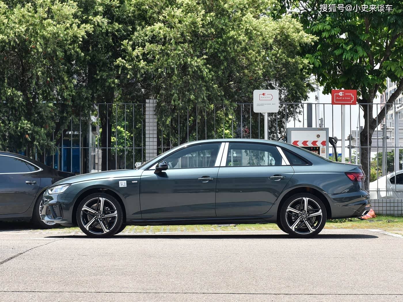 再来看车身侧面部分,奥迪A4L的车身线条流畅而优雅。一条从前大灯贯穿至车尾的腰线,不仅增加了车身的层次感,还营造出一种向前俯冲的运动姿态。车身比例协调,轴距达到了2908mm,在同级别车型中具有一定的优势,为车内乘客提供了较为宽敞的腿部空间。此外,奥迪A4L还配备了大尺寸的轮毂,多幅式的设计造型精致,与车身相得益彰,既提升了车辆的视觉效果,又保证了行驶的稳定性。