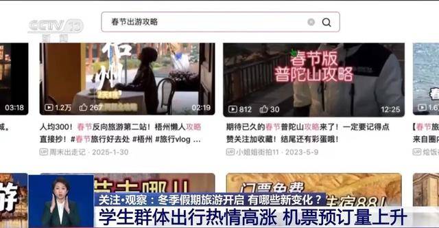 即将迎来的春节假期把出行的热情预先拉满。平台数据显示,从1月12日至1月19日出发的机票预订量周环比有明显增长,其中18—22岁之间的旅客群体票量占比超过20%,年轻人特别是学生群体稳占第一波出行热潮的前列。