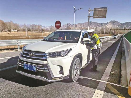 图为拉萨交警在重点路段对过往车辆进行检查。(图片由拉萨市公安局交通管理支队提供)