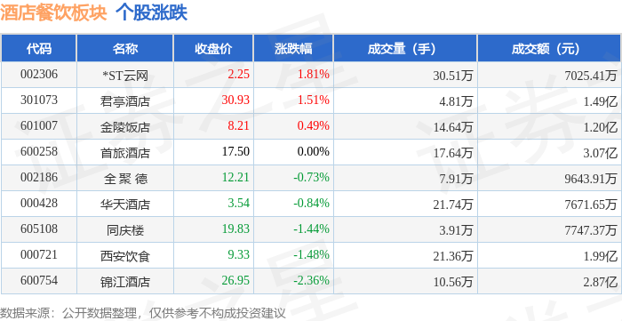 证券之星消息,1月26日酒店餐饮板块较上一交易日下跌0.92%,锦江酒店领跌。当日上证指数报收于4132.61,下跌0.09%。深证成指报收于14316.64,下跌0.85%。酒店餐饮板块个股涨跌见下表: