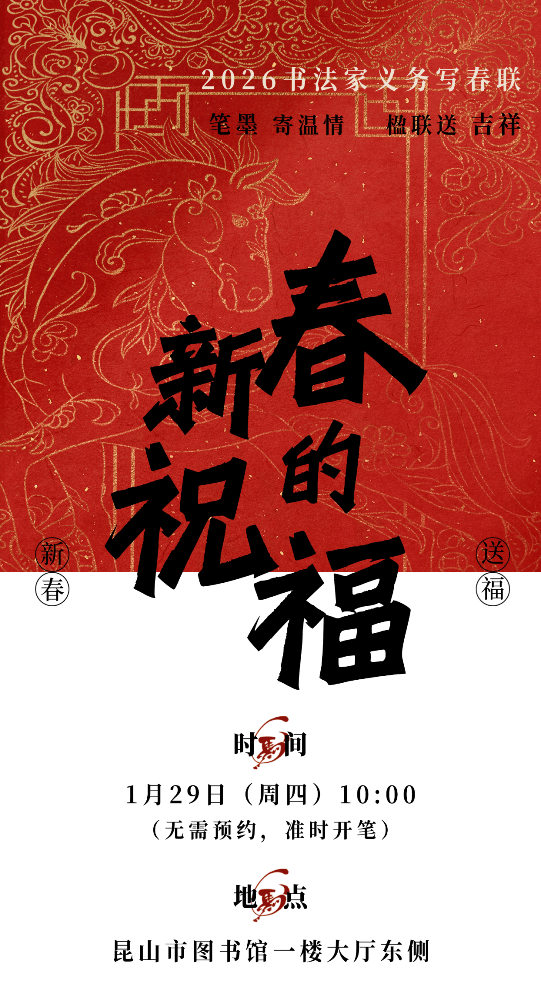 书法家义务写春联|新春送福,翰墨飘香——昆山市图书馆邀您共迎马年