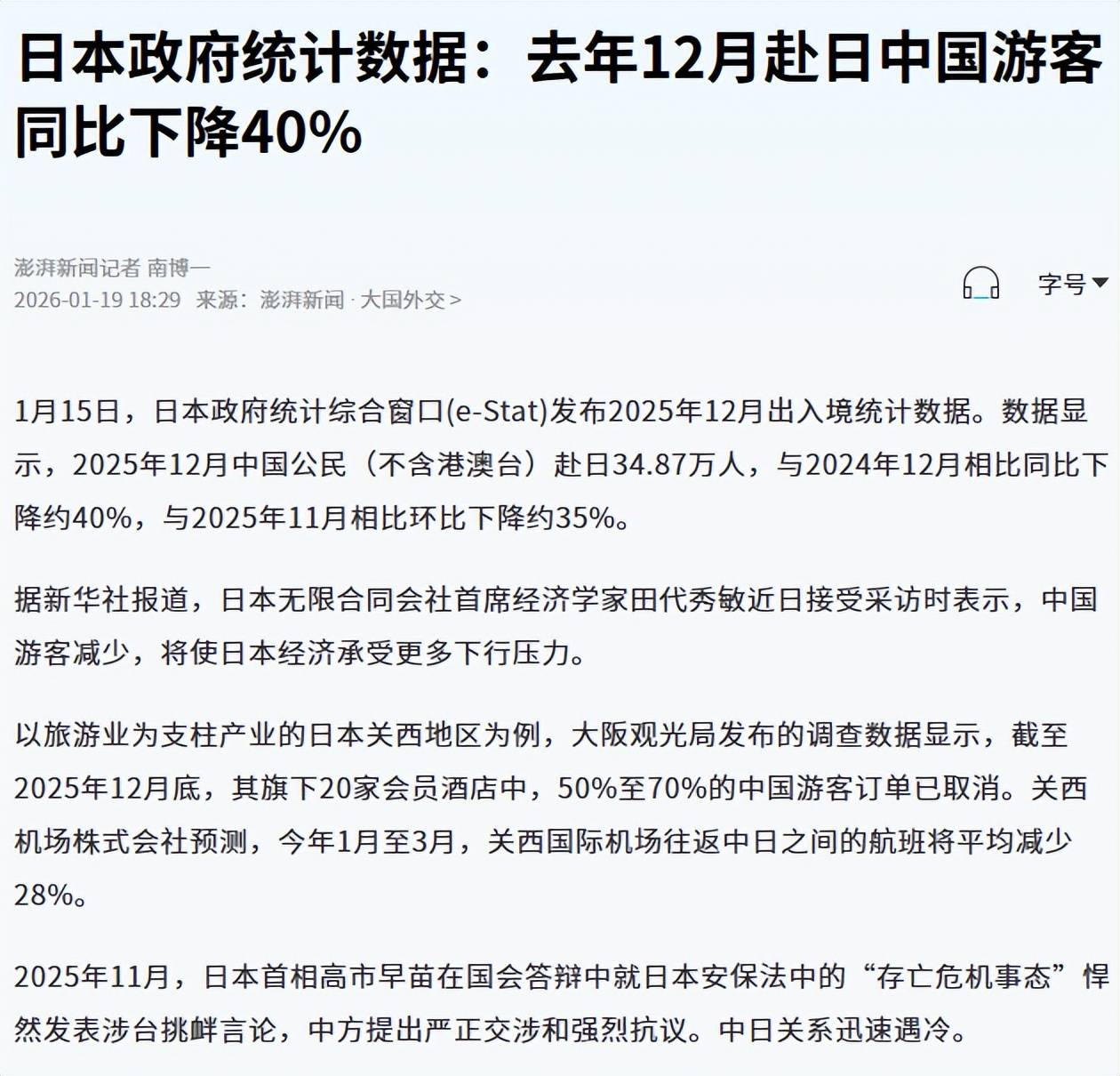 前两天日本官方数据刚出来,确实挺惨,去年12月咱们中国去日本的游客直接腰斩,跟前年比少了足足40%。这数看着是挺解气,但你别真以为这全是大家突然“爱国心爆棚”自发不去了。这背后的水深着呢,其实主要是“路断了”。