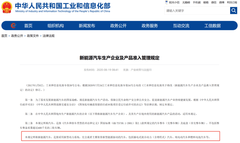 工信部在《新能源汽车生产企业及产品准入管理规定》里明确,新能源汽车是采用新型动力系统,完全或主要依靠新型能源驱动的汽车。