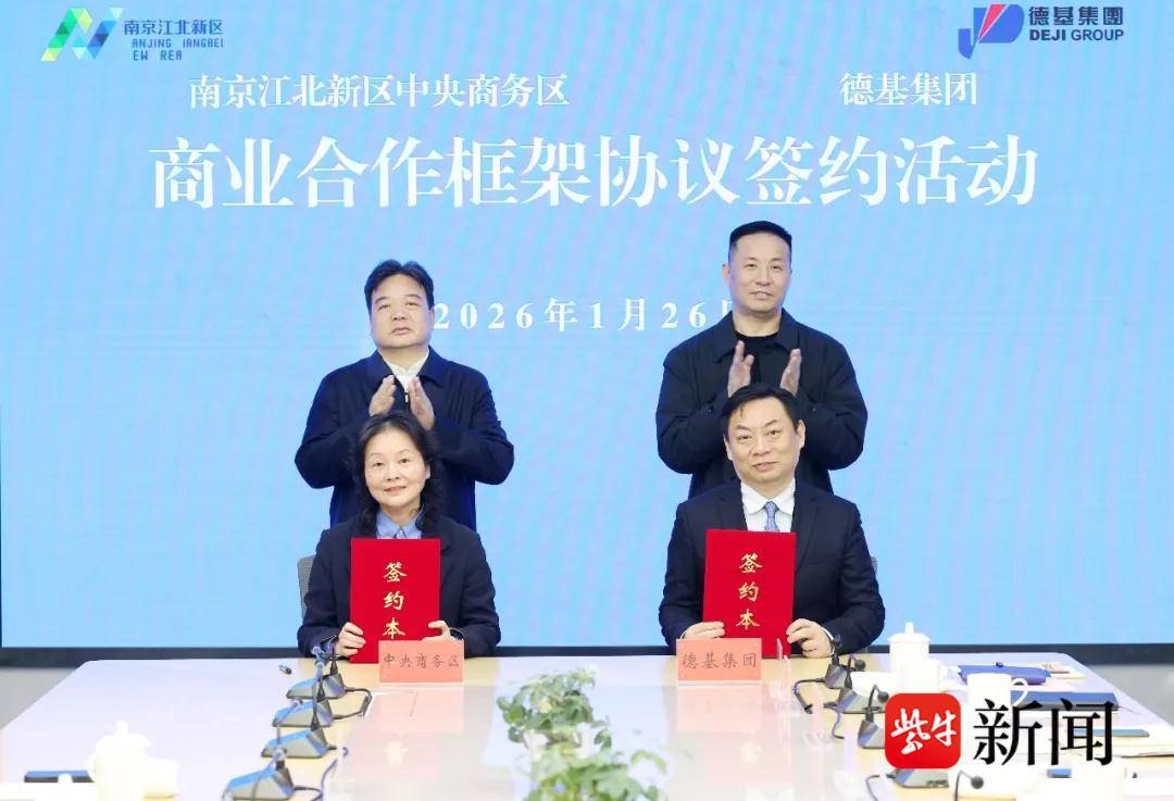 扬子晚报网1月26日讯(通讯员 江小北 记者 刘丽媛)1月26日,南京江北新区中央商务区与德基集团签署江北新主城核心区商业合作框架协议。新街口“网红”商场德基将在江北新区打造商业街区。