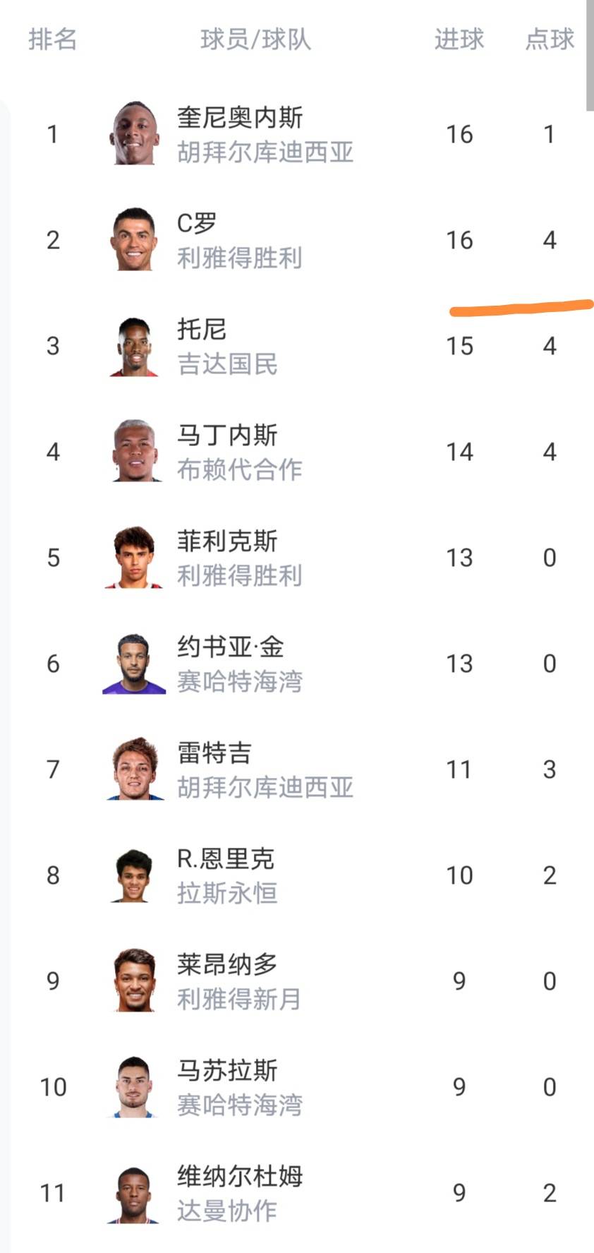 在C罗率队1-0击败布赖代合作队之后,利雅得胜利队积分上涨到了40分,排名也上升到了第二,然后仅距离领头羊利雅得新月队5分,可以看到利雅得胜利队依然有较大的争冠希望。而布赖代合作队输球之后积分停留在35分,继续排名第5,落后利雅得胜利队5分。而哈森姆赢球之后,积20分排名第11,领先降级区9分,保级基本稳了。达马克输球之后积11分排名第15,保级压力巨大。吉达联合击败阿科多之后,积分上涨到了30分,仍距离榜首的利雅得新月队15分,吉达联合争冠基本没戏,而阿科多队输球之后积9分排名倒数第二,保级任重道远。