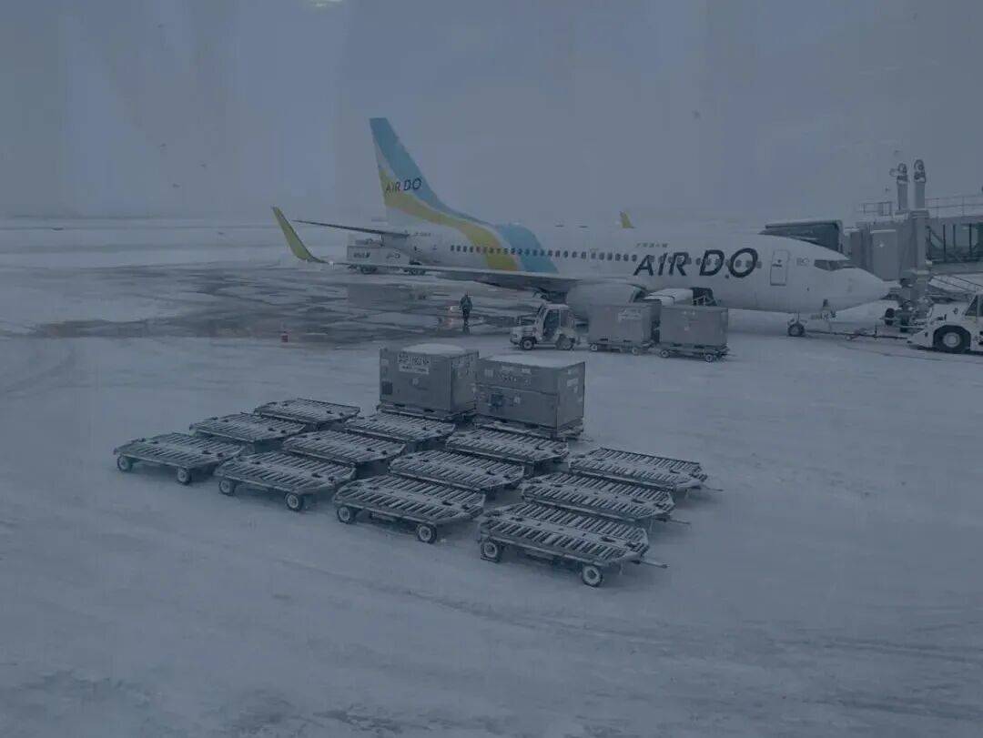 有中国网友拍下暴雪之后的,日本北海道新千岁机场画面。
