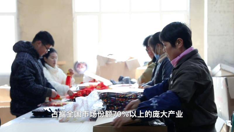 山东省临沂市郯城县红花镇是全国著名的中国结生产基地。一进入腊月,这里就变成了红色的海洋。中国结传统编织技艺这项省级非物质文化遗产,如今编织着一个年产值超18亿元、占据全国市场份额70%以上的庞大产业。
