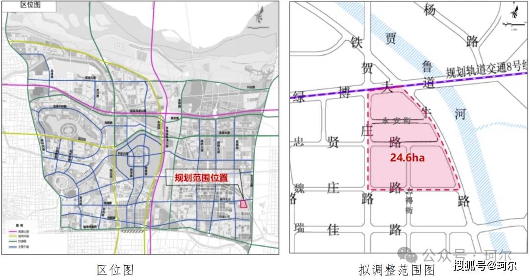 本次拟调整范围位于郑州市郑东新区白沙组团南部的BS26-02街坊,地处绿博大道与贾鲁河交汇处西南侧;具体规划范围由绿博大道、贺庄路、铁牛路、魏庄路四条城市道路围合而成,总用地面积24.6公顷。