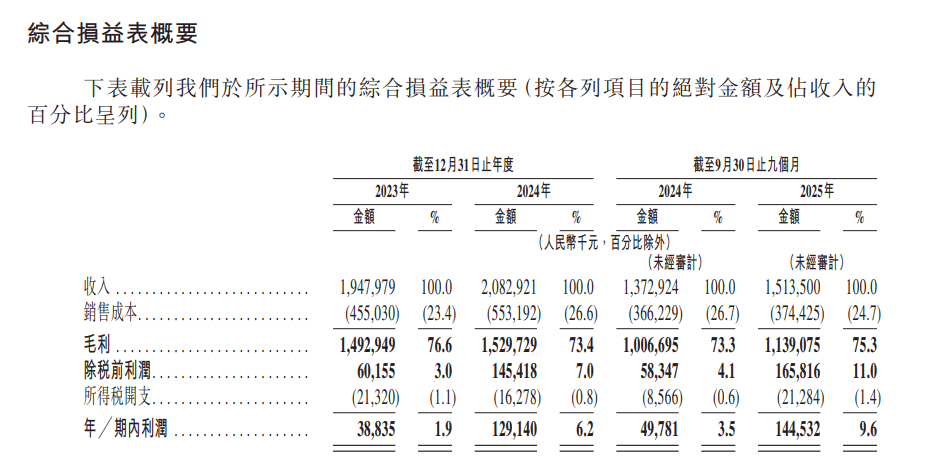 财务数据显示,2023年、2024年及2025年前九个月,HBN的总收入分别为19.48亿元(人民币,下同)、20.83亿元、15.14亿元;净利润分别为3883.5万元、1.29亿元、1.45亿元。