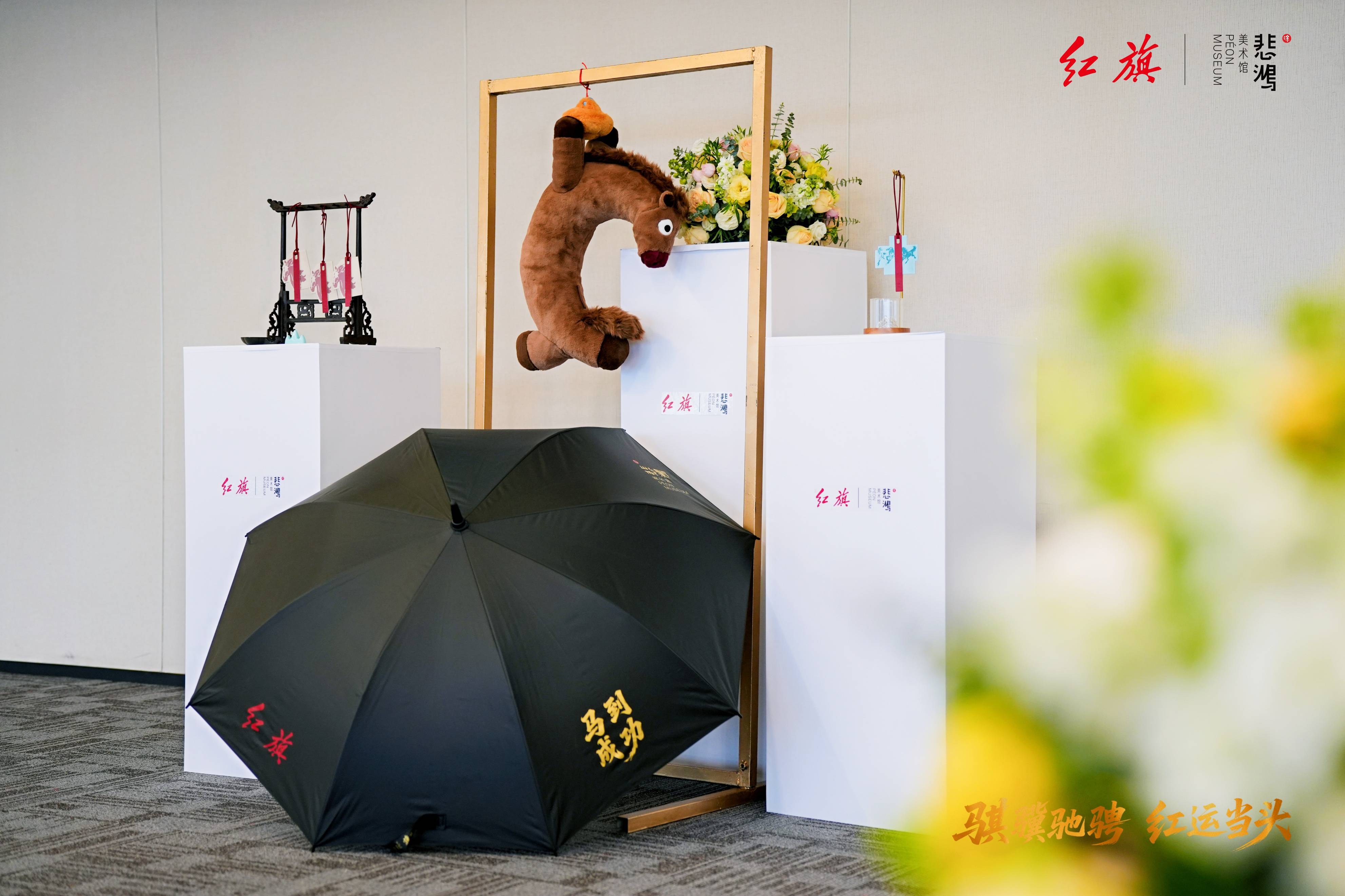双方还推出一系列联名文创周边,包括香挂、雨伞、抱枕等,传递“陪伴与幸福”的美好寓意。比如,联名香挂以《奔马》与《群奔》为灵感,寓意 “车行万里,红运相(香)随”;联名雨伞源自《双骏图》,寓意 “红运当头,旗开得胜”;联名抱枕“立马抱富” 则对《奔马》进行趣味化现代设计。