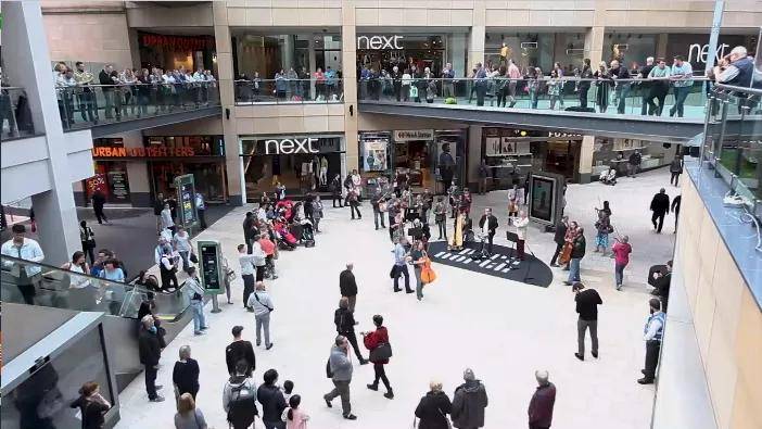你瞧,音乐家们从各处赶来,带着乐器汇聚在商场,他们奏响了《波莱罗舞曲》,旋律层层递进,节奏明快有力,起初,好奇的观众被这突如其来的音乐吸引,纷纷驻足,随着演奏推进,现场气氛愈发热烈,观众们的热情被彻底点燃,脸上满是惊喜。