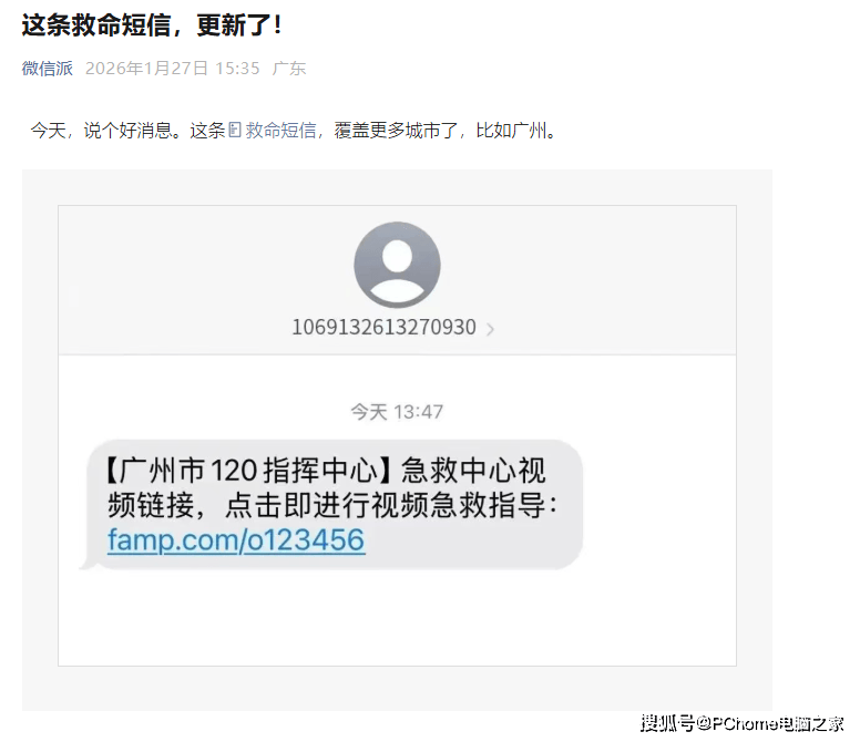 2026年1月27日,微信官方通过“微信派”公众号宣布,救命短信功能已覆盖至广州等更多城市。