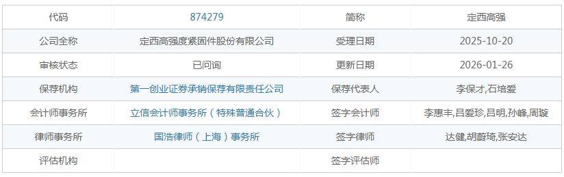 1月26日,据北交所官网,定西高强度紧固件股份有限公司(下称“定西高强”)回复第一轮审核问询函,公司实控人持股比例较低、身负代持和对赌往事、曾存多项财务内控不规范等情况受到监管层的关切。