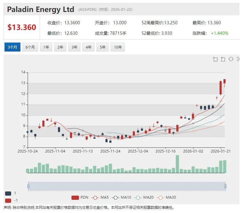 【异动股】铀价强势上涨 Paladin Energy (ASX:PDN)四季度产量大增 积极布署资源扩张