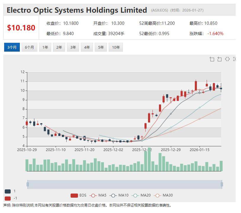 军工股 Electro Optic Systems (ASX: EOS)发布最新季度运营更新 订单储备4.59亿澳元 同比增长238%
