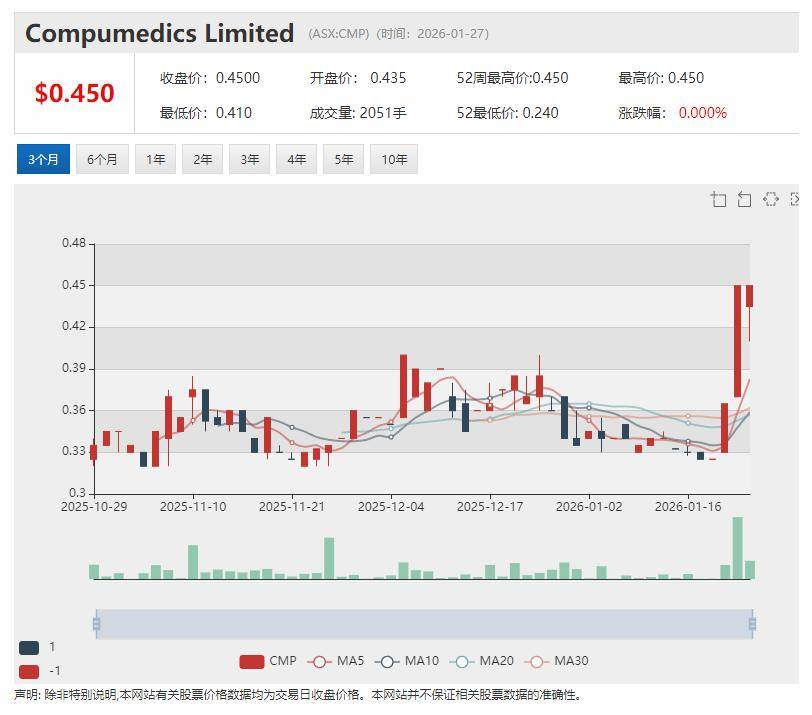 澳华财经在线数据库显示,CMP最新价0.45澳元,已发行股本2亿股,市值8989万澳元。