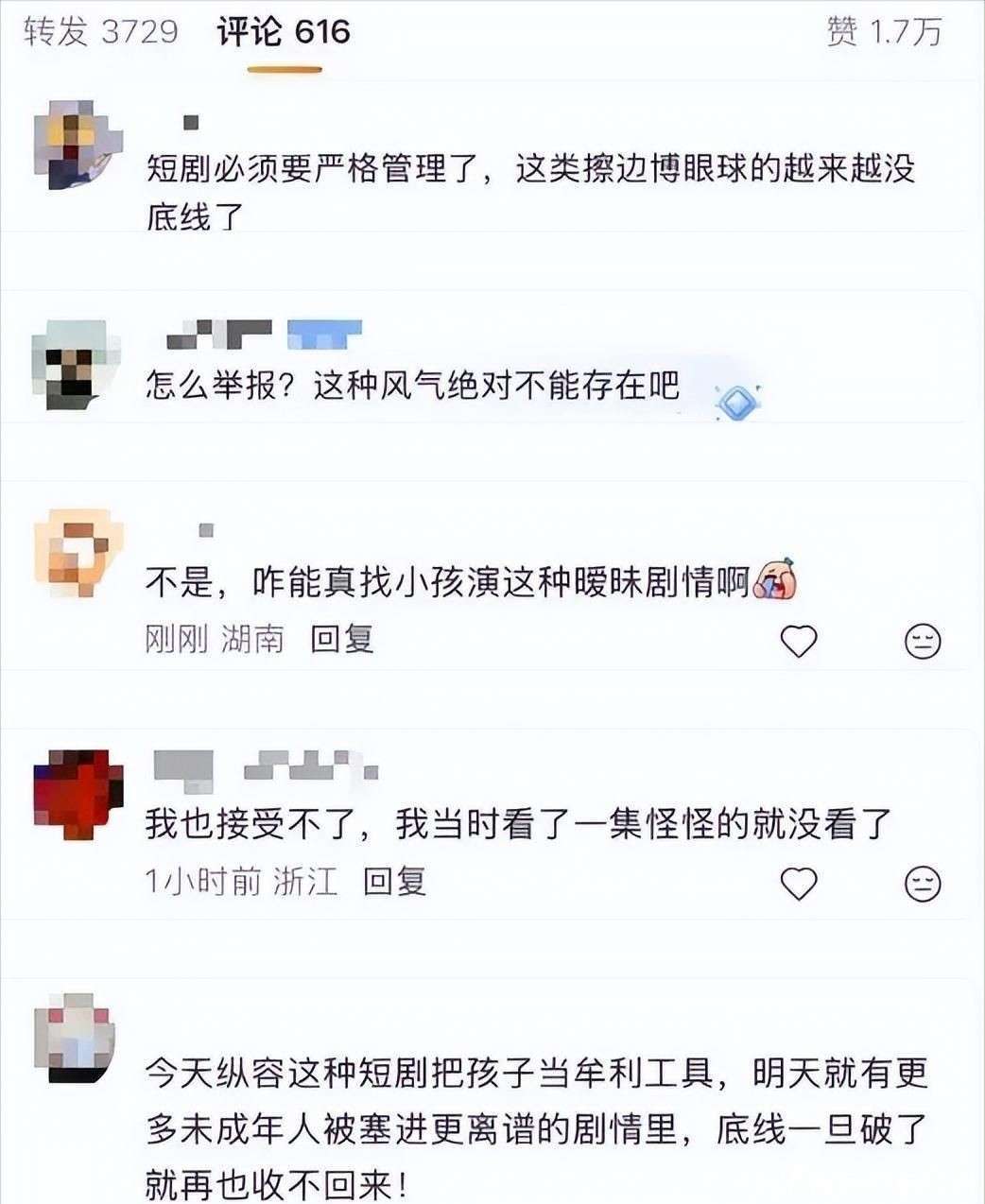 剧中频繁出现牵手、搂抱等亲密镜头,更充斥着养成系爱情圆房大婚等成人化暗示,令人不适。观众纷纷表示,这样的情节实在让人不解,难道仅仅是为了追求所谓的真实感?然而,这种敏感题材本不应该交由儿童演员来演绎。整个制作过程中,难道没有编剧、导演或监制提出异议吗?该剧引发了广泛的愤慨,许多人认为这不仅仅是对未成年人身心健康的严重侵害,更是赤裸裸的内容剥削。结果,该短剧很快被各大平台强制下架,并引发了一波呼吁加强对微短剧市场监管的浪潮,大家普遍认为,绝不能为了流量和收益而牺牲道德底线。
