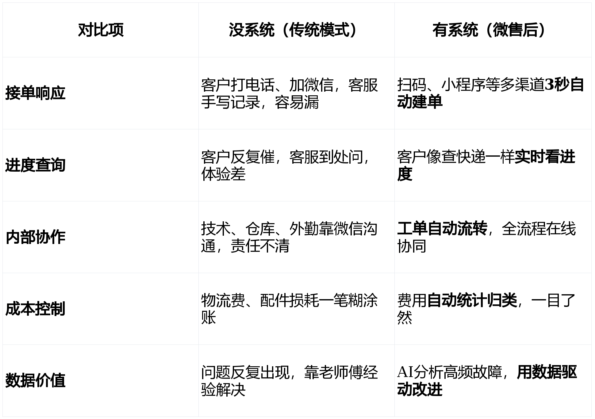 它解决的不仅是效率问题,更是将售后服务从“成本部门”转变为客户信任的建立者和二次销售的起点。