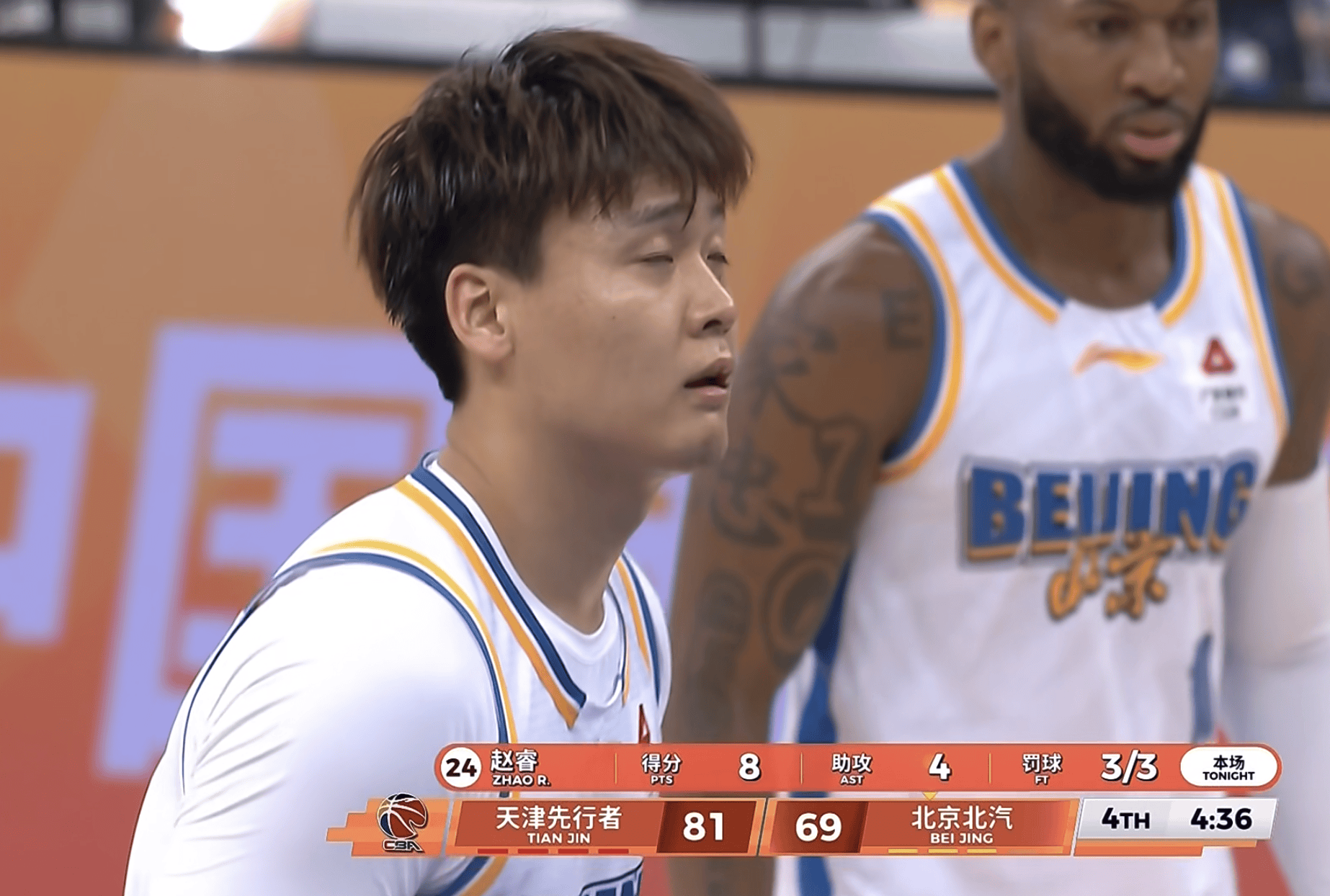 而在天津队与北京队的比赛中,北京队的赵睿、斯佩尔曼迎来复出,上半场两支球队打得很激烈,北京46-41天津。第三节天津队缩小分差追回3分,北京以65-63来到末节,比赛的胜负悬念很大。第四节开始后,北京队贝利罚球2进1,天津队的赖俊豪三分命中,林庭谦连得4分,天津队70-66打停北京队。回到比赛中,北京队范子铭罚球2罚都不进,天津队郑昊燃三分为球队续上了,北京已落后7分。