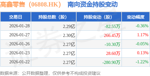 证券之星消息,1月28日南向资金减持82.55万股高鑫零售(06808.HK)。近5个交易日中,获南向资金减持的有3天,累计净减持78.7万股。近20个交易日中,获南向资金增持的有9天,累计净增持370.9万股。截至目前,南向资金持有高鑫零售(06808.HK)2.29亿股,占公司已发行普通股的2.39%。