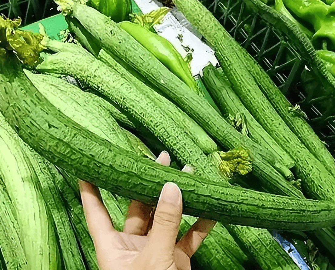 正常丝瓜粗细适中,表皮纹路清晰,韧性足,吃起来脆嫩多汁。