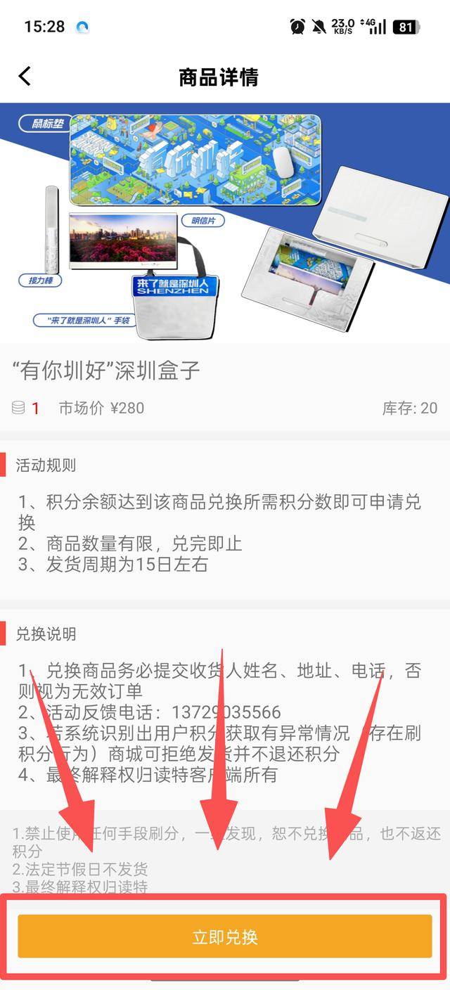 ⑤点击选中商品,进入详情页面,点击【立即兑换】