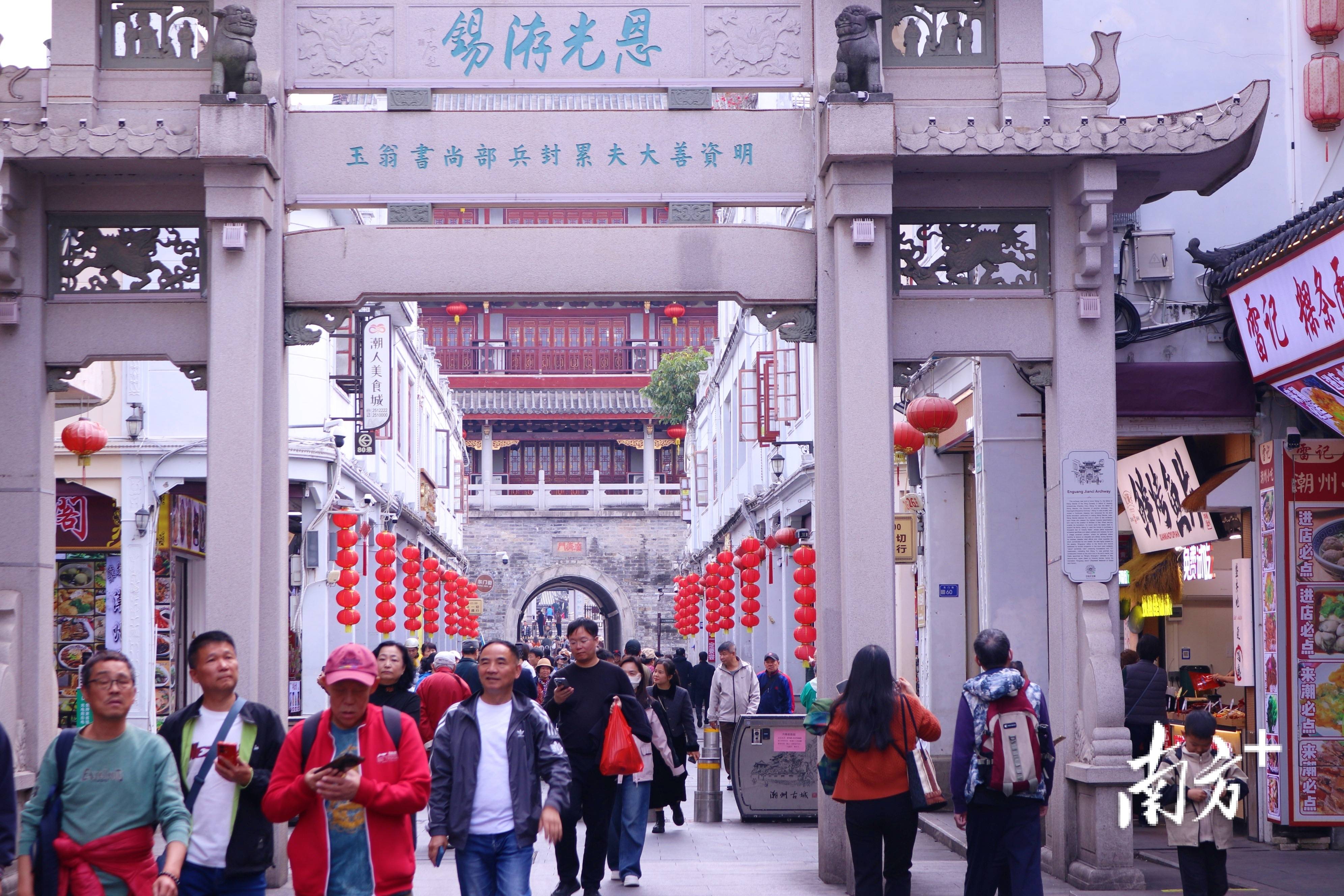 潮州市旅游消费进入旺季,牌坊街游客众多。董志豪 摄