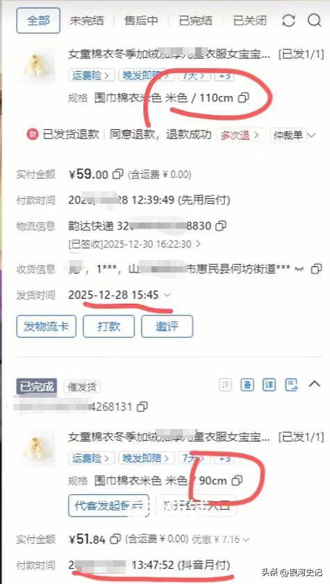 新衣签收后,她立刻以“尺码不合适”申请退货,却将那件领口发黄、袖口发黑、腋下开线的旧90码童装寄回,企图蒙混过关骗取退款。