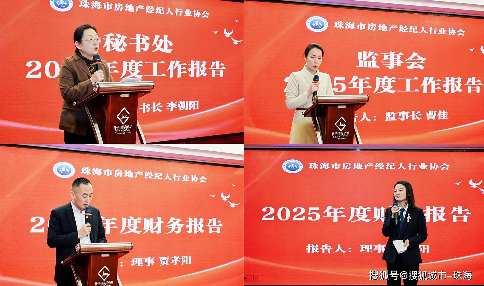 大会在庄严的国歌声中正式开始。协会党支部书记陈交力同志作“2025年度党支部工作报告”,通过影像资料回顾全年党建与学习活动,并展望2026年协会党建工作方向。秘书长李朝阳作年度工作报告,以“致敬担当,坚韧行远”为主题,向全本会员单位的坚韧和担当致敬,并表示在新的一年将遵循“承上启下、行业规范,服务赋能”原则,提升服务水平。监事长曹佳汇报了监事会年度工作,强调将强调将继续依法依规履行监督职责,为协会健康发展提供夯实保障。理事代表贾孝阳作2025年度财务报告。会议期间,全体会员单位投票表决了新晋理事以上单位入选名单,监事会全程监督投票流程。珠海市世纪湾区技术服务有限公司与珠海市山河拍卖有限公司成功晋升副会长单位,珠海市珠中好房房地产代理有限公司成为当选了理事单位。