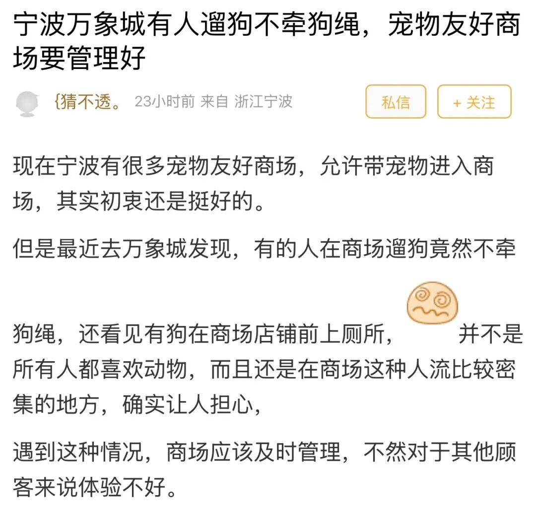 现在,宁波越来越多的商场允许宠物进出。但有些地方对宠物友好了,对人却“不友好”了。