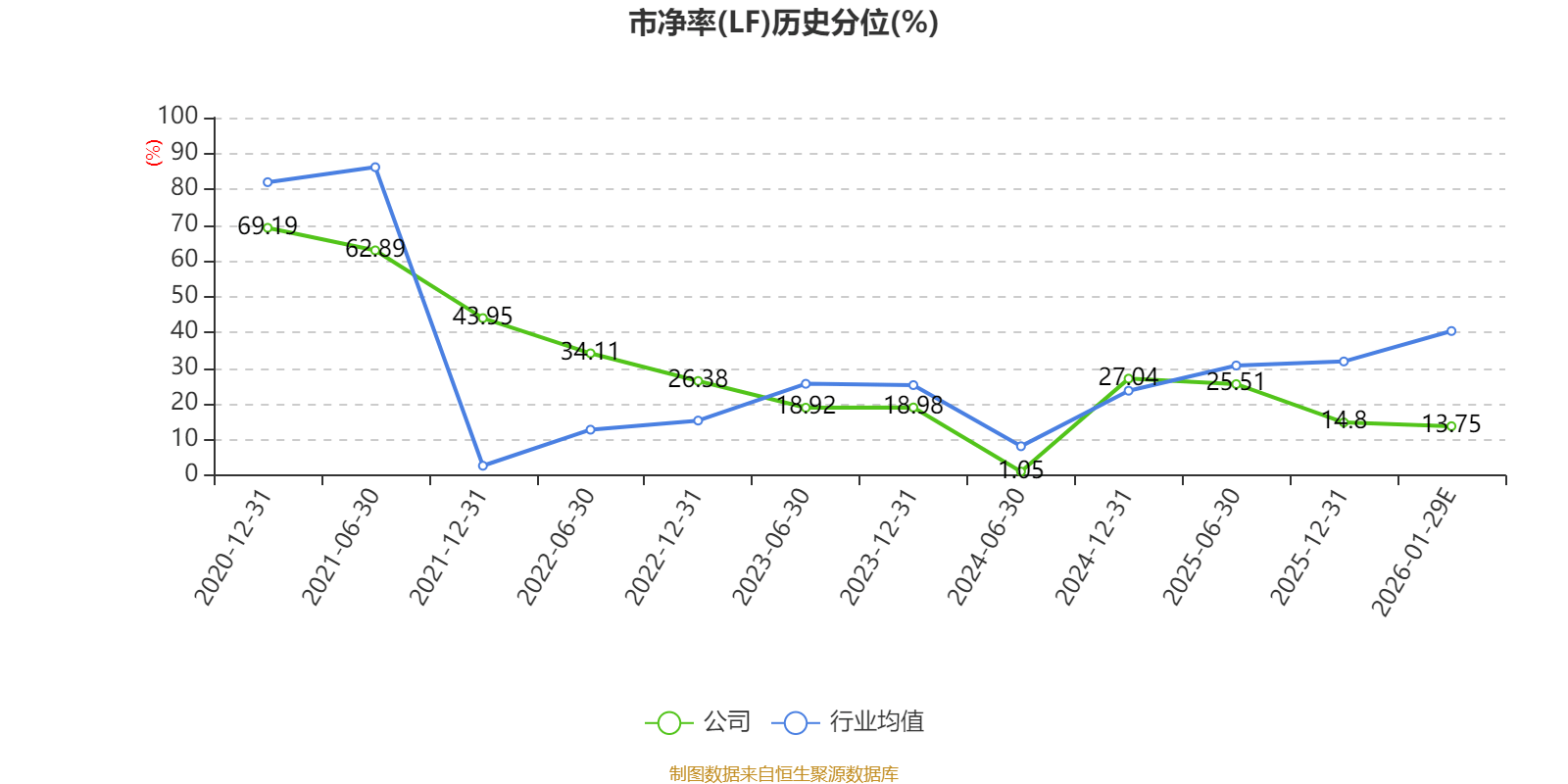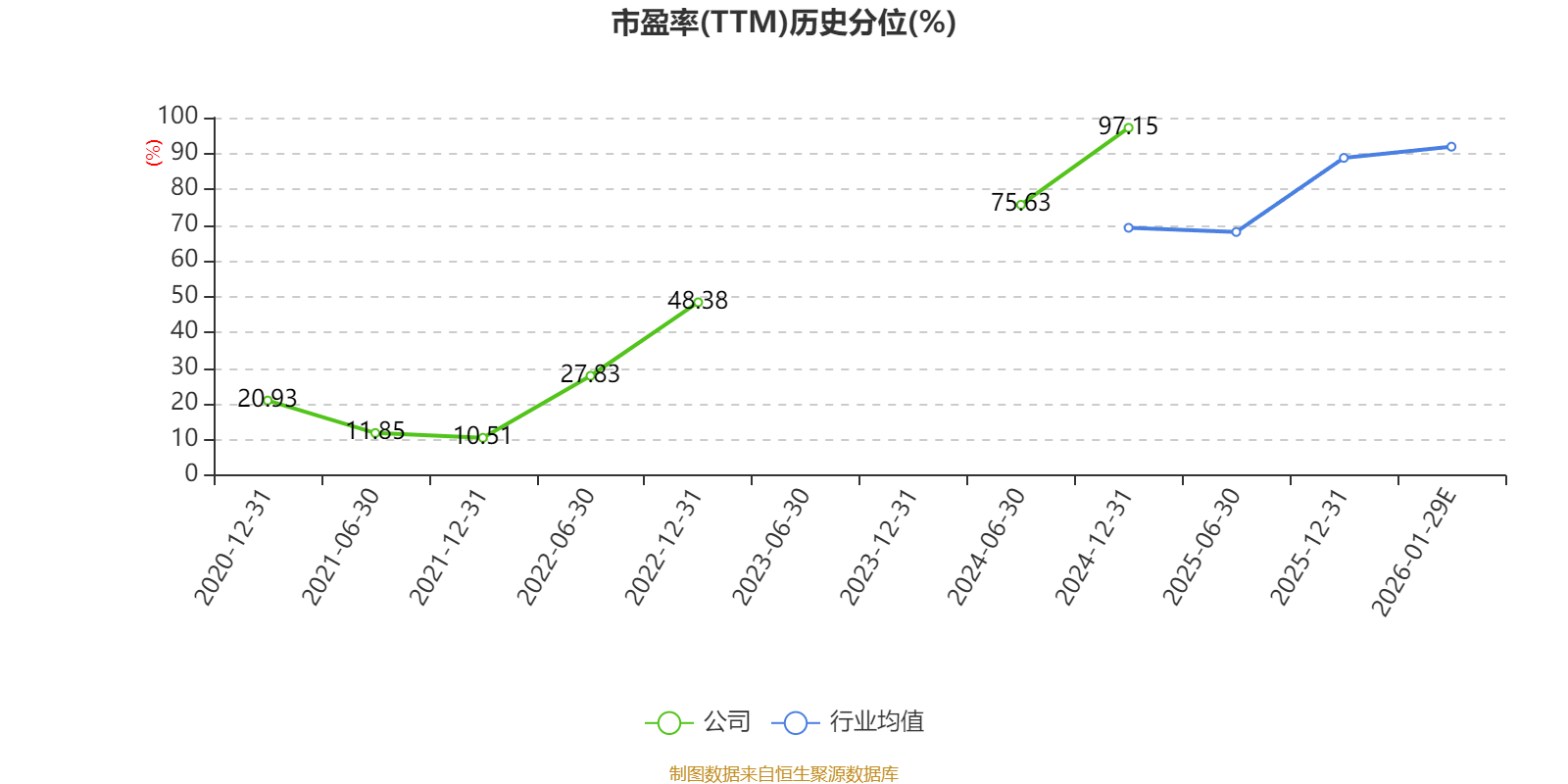 市盈率、市净率为负时,不显示当期分位数,会导致折线图中断。