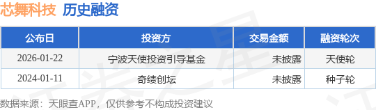 证券之星消息,根据天眼查APP于1月22日公布的信息整理,芯舞半导体科技(宁波)有限公司天使轮融资,融资额未披露,参与投资的机构包括宁波天使投资引导基金。