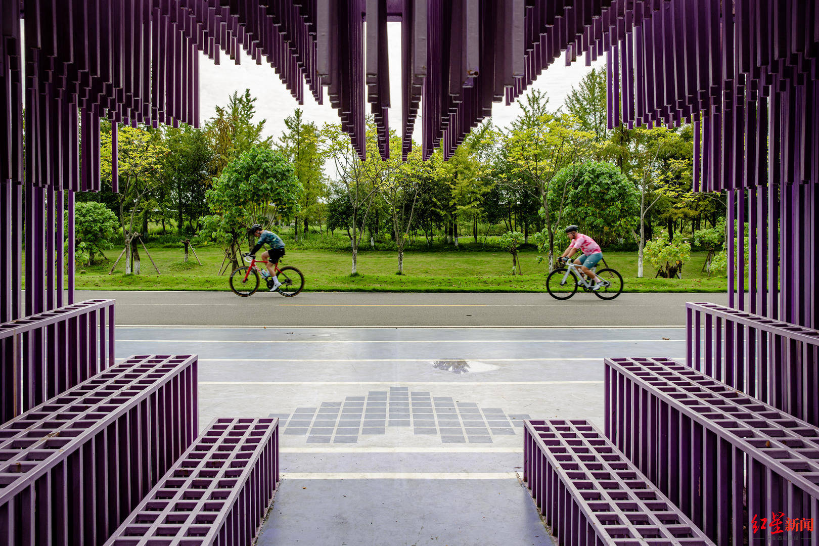 ▲人们在绿道骑行,一边锻炼一边欣赏美景 摄影:龚文祺