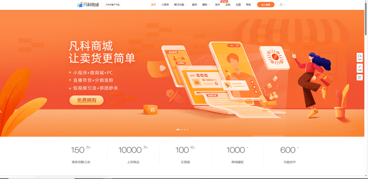 我们要打开凡科商城官网,注册好账号之后,进入后台。