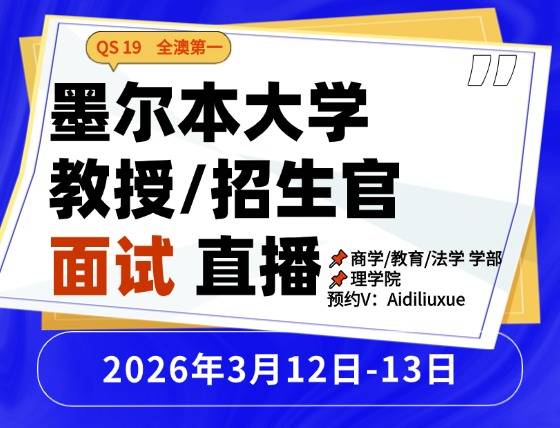 对于行程不方便的同学们,也可以看看【3.12/3.13墨尔本大学+艾迪留学专场】,墨大教授招生官莅临授权代理艾迪留学办公室,为同学们解析:墨大商学、法学、教育学、理学院课程,还可以一对一面试!(可线上)!