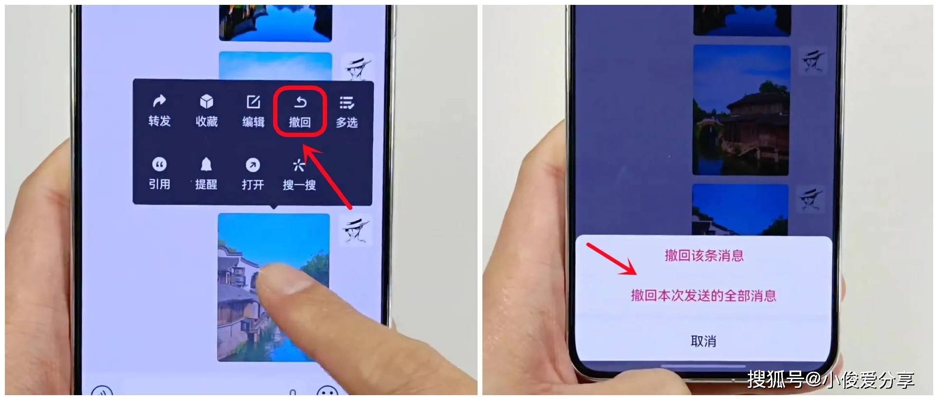 但是现在呢,咱们就可以完美解决这个烦恼了,你发错了哪条消息,或者哪张图片,只要长按一下,点一下撤回,你看,就出现了撤回本次发送的所有消息,我们只要点击一下,就可以一键撤回本次所有的误发内容,一步到位,让纠错和你的操作,一样干净利落,这样咱们就不用由于发错消息而烦恼了!
