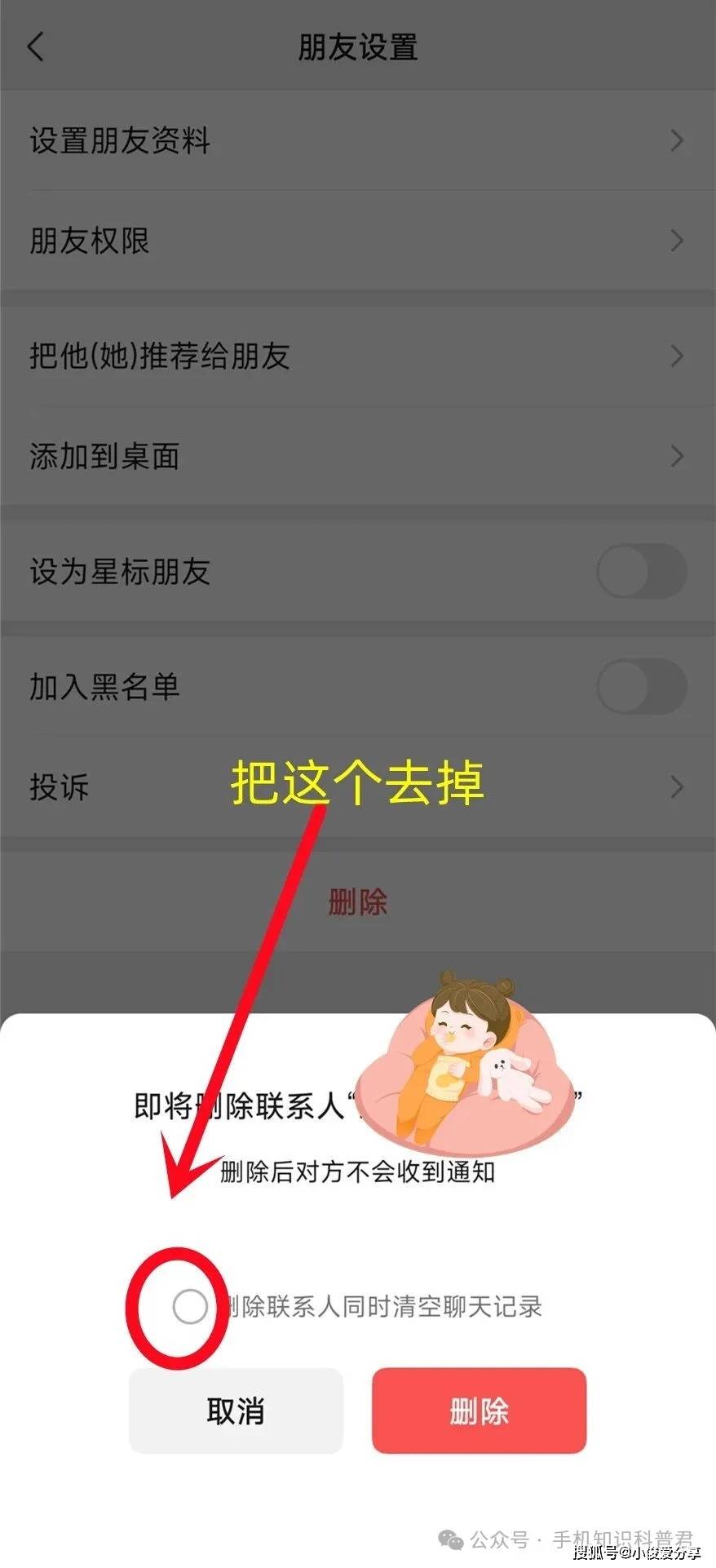 咱们在删除好友的时候,下面会出现一个,删除联系人同时清空聊天记录的选项,咱们只要把这个勾去掉,就可以实现好友删除了,聊天记录依然保留的情况,不仅如此