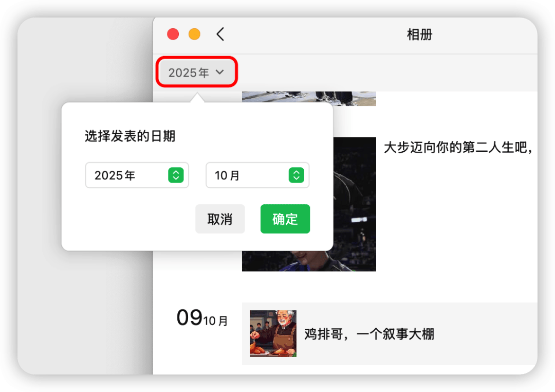 具体来说,微信终于为 PC 端的朋友圈加入了时间筛选功能。